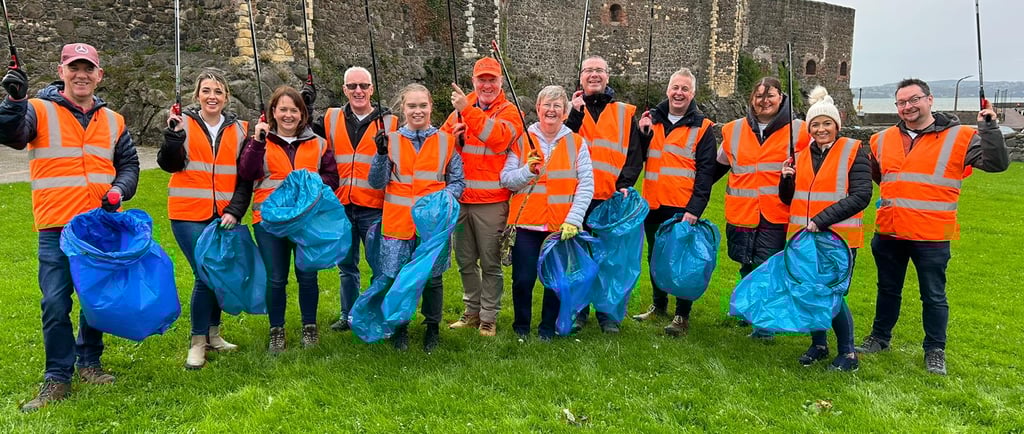 We were pleased to be joined by some staff from Allied Irish Banks (AIB) for a litter pick in Carrickfergus today. A total of 14 bags of waste were collected before we stopped for some lunch and a chat about litter, pollution and how we can all play a role in creating a solution.